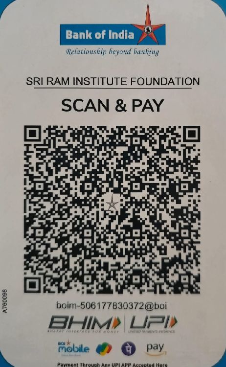 SRI RAM INSTITUTE FOUNDATION 506120110000372 IFSC Code: BKID0005061 Bank: Bank of India Branch: Nazira